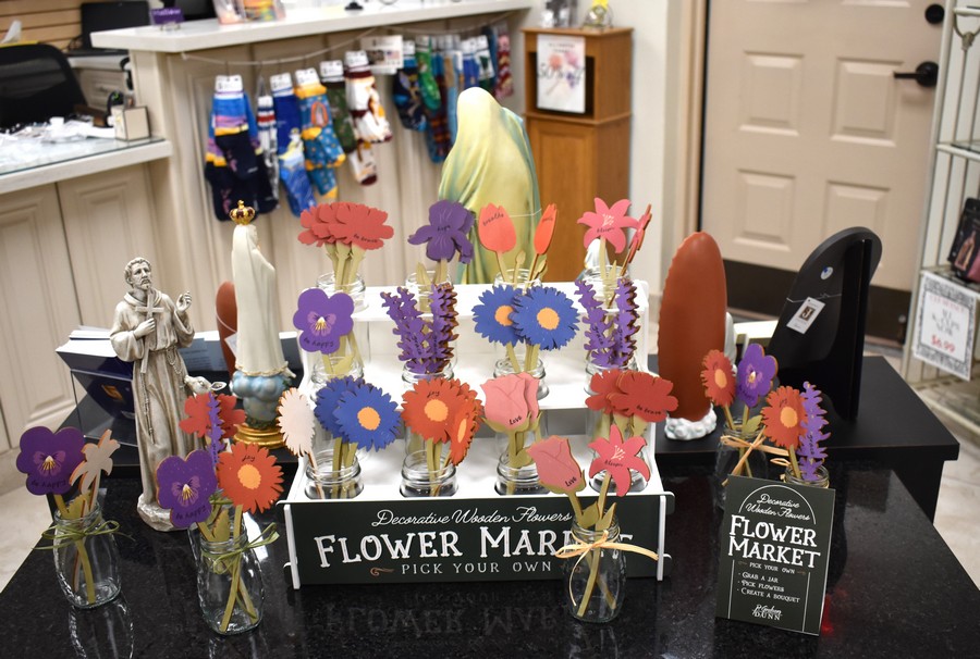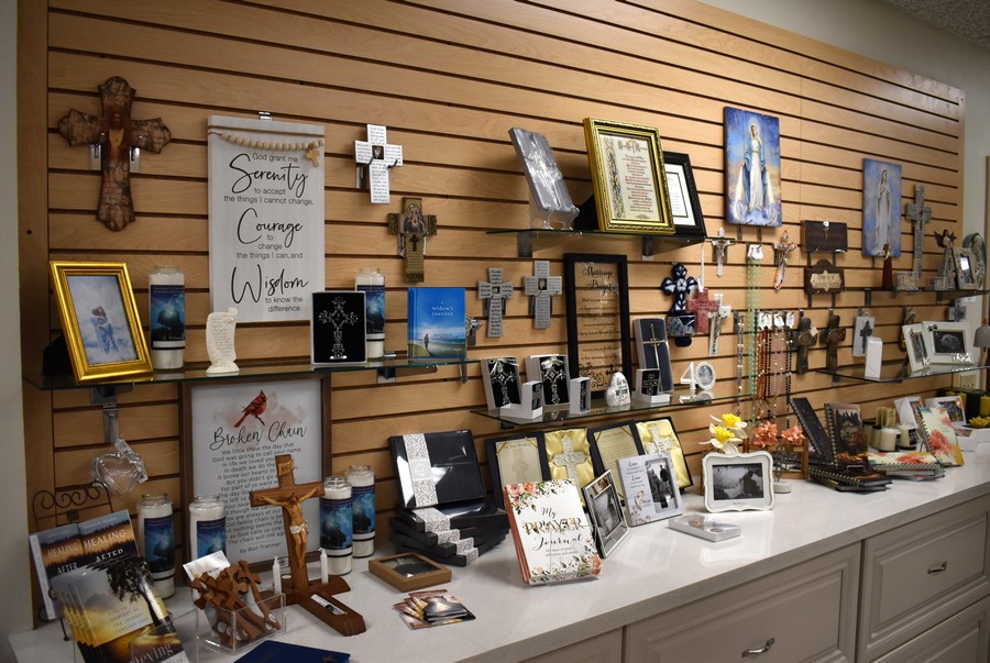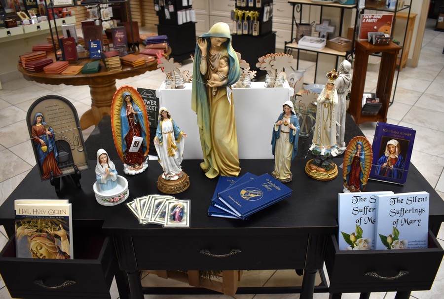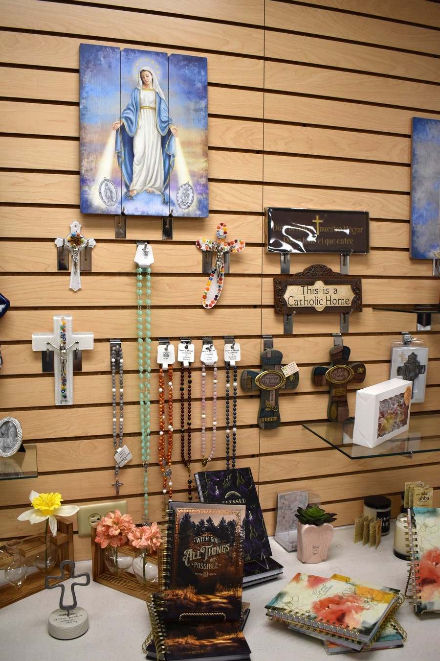 You’ll find a large assortment of greeting cards for any occasion, statues, books, prayer aids, chapel veils, crucifixes, rosaries, holy medals, holy water containers, and so much more. We also take special orders whenever possible.